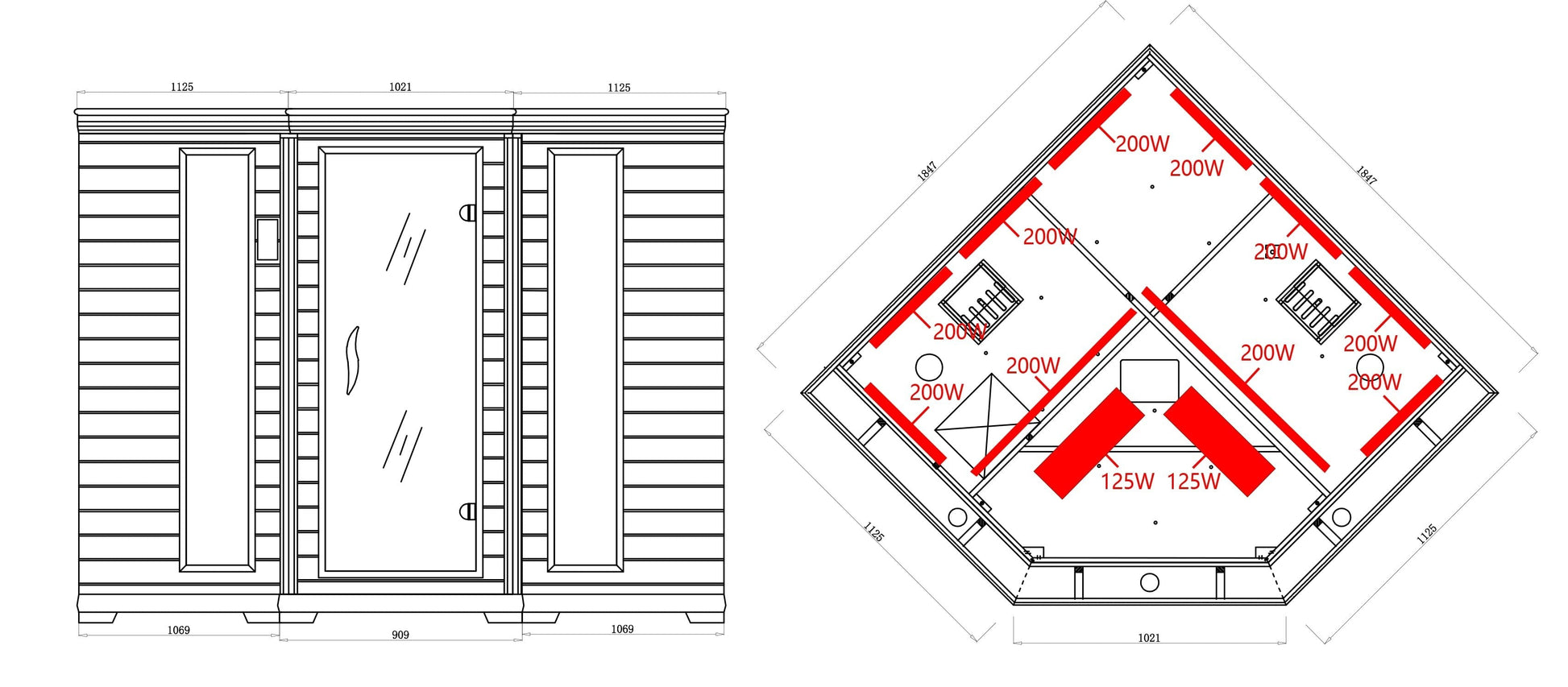 - LED Accent: Inside sauna, light provides gentle ambient inside lighting | 3 LED roof, outside sauna, spotlights for soothing ambience.
